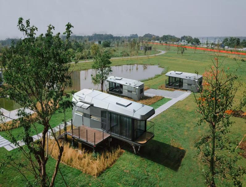 It can be flexibly adapted to the whole scene. Whether it is the transformation of the scenic spot homestay, the construction of the camping base, the construction of the rural separate courtyard, or the arrangement of Internet celebrity punching points, the construction of temporary office space capsules, modular space capsules can perfectly meet the needs; customised solutions are provided for different scenarios: the scenic spot homestay version is equipped with floor-to-ceiling windows and starry sky ceilings. At night, you can lie in bed and enjoy the starry sky during the day, and enjoy the scenic spots. At the same time, it is equipped with a special intelligent check-in system for homestays, which is convenient for tourists to check-in by self-service; the camping base version is equipped with outdoor expansion terraces and barbeque leisure areas, and can be built outside the cabin to meet the needs of campers for dinner, barbeques and leisure; the rural courtyard version expands the.